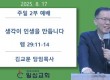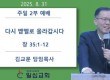 ilsim Contents 일심나눔터 공지사항 경조부 게시판 행사갤러리 새가족소개 섬김부서 유아부 유치부 유년부 초등부 학생부 청년부 남전도회 여전도회 예배설교 목사님설교 초청강사설교 특별영상 찬양 교회소개 교회비전 예배안내 섬기는이들 교회발자취 오시는길 목사님설교 목사님설교 > 예배설교 > Home 목사님설교 목록 Total 10건 1 페이지 10 믿음이 회복되어야 문제가 해결됩니다 10 관리자 | 10-08 | (수 18:1-10) 1 이스라엘 자손의 온 회중이 실로에 모여서 거기에 회막을 세웠으며 그 땅은 그들 앞에서 돌아와 정복되었더라 2 그러나 이스라엘 자손 중에 그 기업… 9 주님이 원하시는 교회가 되자 9 관리자 | 09-23 | (마 16:13-20) 13 예수께서 빌립보 가이사랴 지방에 이르러 제자들에게 물어 이르시되 사람들이 인자를 누구라 하느냐 14 이르되 더러는 3)세례 요한, 더러는 엘… 8 웃사냐? 오벧에돔이냐? 8 관리자 | 09-16 | (삼하 6:1-12) 1 다윗이 이스라엘에서 뽑은 무리 삼만 명을 다시 모으고 2 다윗이 일어나 자기와 함께 있는 모든 사람과 더불어 바알레유다로 가서 거기서 하나님의 … 7 칭찬받는 믿음에 역사가 일어난다 7 관리자 | 09-09 | (마 15:21-28) 21 예수께서 거기서 나가사 두로와 시돈 지방으로 들어가시니 22 가나안 여자 하나가 그 지경에서 나와서 소리 질러 이르되 주 다윗의 자손이여 나… 6 다시 벧엘로 올라갑시다 6 관리자 | 09-02 | (행 18:1-11) 1 그 후에 바울이 아덴을 떠나 고린도에 이르러 2 아굴라라 하는 본도에서 난 유대인 한 사람을 만나니 글라우디오가 모든 유대인을 명하여 로마에서 … 5 생각이 인생을 만듭니다 5 관리자 | 08-19 | (렘 29:11-14) 11 여호와의 말씀이니라 너희를 향한 나의 생각을 내가 아나니 평안이요 재앙이 아니니라 너희에게 미래와 희망을 주는 것이니라 12 너희가 내게 부… 4 생수의 강이 흐르게 하라 4 관리자 | 08-12 | (겔 74:1-12) 1 그가 나를 데리고 성전 문에 이르시니 성전의 앞면이 동쪽을 향하였는데 그 문지방 밑에서 물이 나와 동쪽으로 흐르다가 성전 오른쪽 제단 남쪽으로 흘러 … 3 보배이신 주님을 만나야 합니다 3 관리자 | 08-12 | (고후 4:7-9) 7 우리가 이 보배를 질그릇에 가졌으니 이는 심히 큰 능력은 하나님께 있고 우리에게 있지 아니함을 알게 하려 함이라 8 우리가 사방으로 욱여쌈을 당하… 2 합력하여 선을 이루시는 하나님 2 관리자 | 07-29 | (롬 8:28) 28 우리가 알거니와 하나님을 사랑하는 자 곧 그의 뜻대로 부르심을 입은 자들에게는 3)모든 것이 합력하여 선을 이루느니라 1 자족하면 행복해집니다 1 관리자 | 07-22 | (빌 4:10-13) 10 내가 주 안에서 크게 기뻐함은 너희가 나를 생각하던 것이 이제 다시 싹이 남이니 너희가 또한 이를 위하여 생각은 하였으나 기회가 없었느니라 11 … 게시물 검색 검색대상 제목 내용 제목+내용 회원아이디 회원아이디(코) 글쓴이 글쓴이(코) 검색어 필수